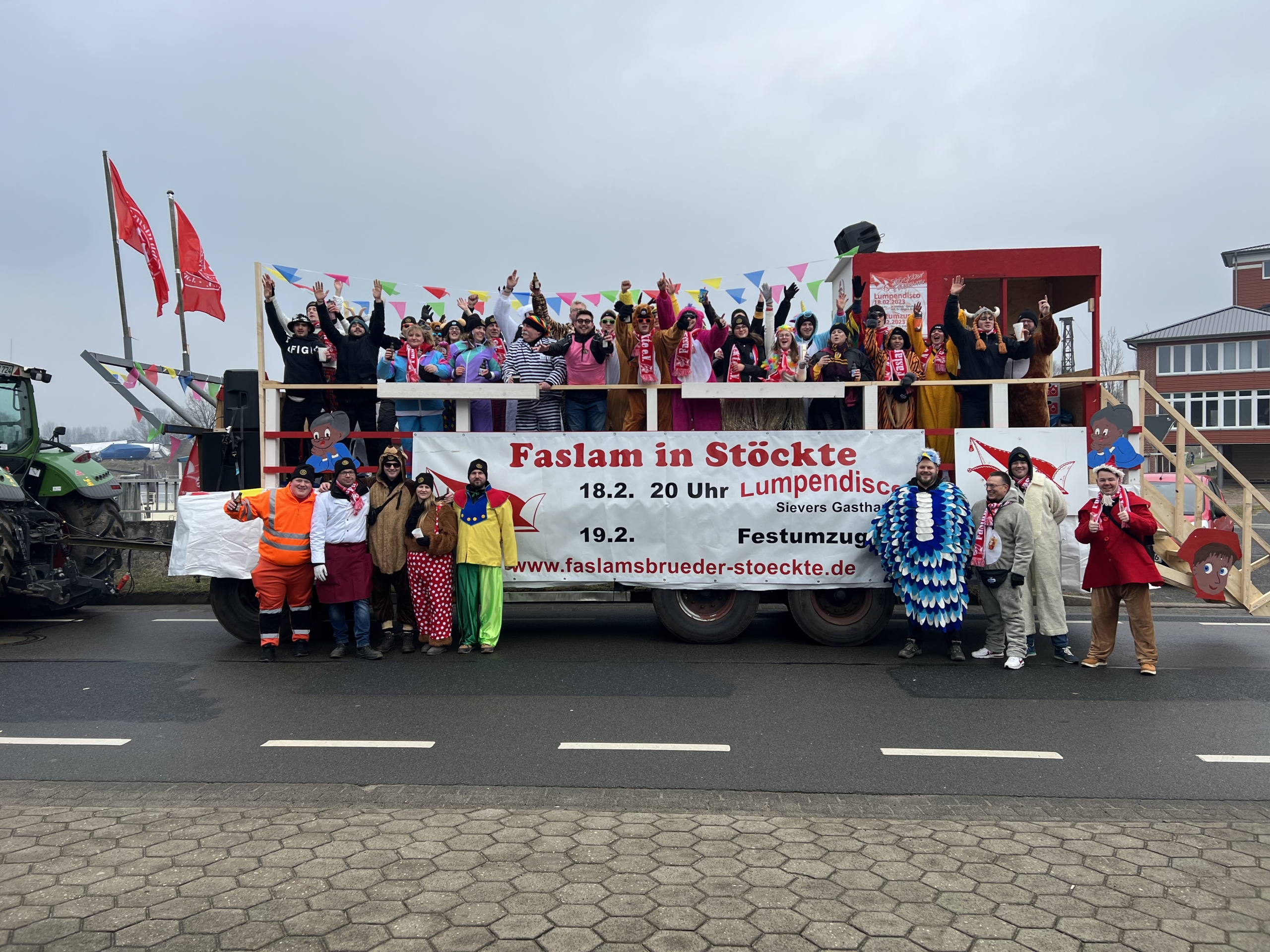 Mit guter Laune, Partymusik vom digitalen Plattenteller und vielen bunten Kostümen konnten wir einen tollen Beitrag zu einem schönen Faslamsumzug im Nachbardorf Hoopte beitragen.