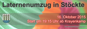 Termine Veranstaltungen Laternenumzug am 16.10.2015 in Stöckte 9. Oktober 2015 / 19. Dezember 2024 von 1. Vorsitzender | Kommentar schreiben Am 16. Oktober 2015 findet der Laternenumzug in Stöckte statt! In gewohnter Weise startet der Umzug mit musikalischer Unterstützung durch einen Spielmannszug und durch Begleitung der Freiwilligen Feuerwehr Stöckte um 19:15 Uhr im Krayenkamp. Der Umzug verläuft ca. 45 Min. durch Stöckte und endet am Feuerwehrhaus und dem Sportplatz im Dorf. Hier ist für das leibliche Wohl gesorgt, […] Weiterlesen » Dorfvereine Stöckte